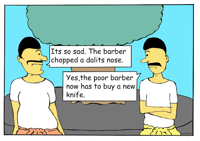 An incident in the Mandya district of Karnataka where a dalits nose was chopped by a barber because he demanded to have his beard shaved.
